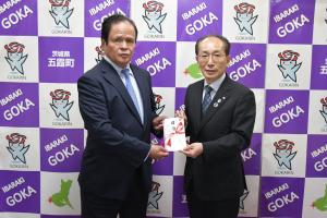 【左側:茨城工場・野中工場長 右側:知久町長】